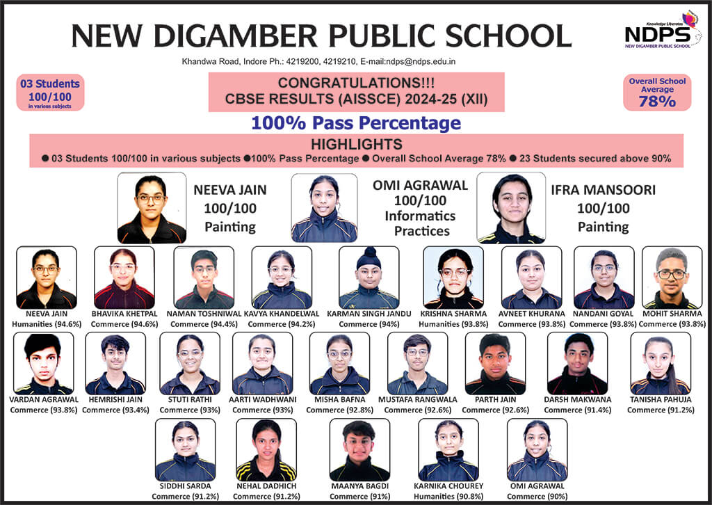 Academic LifeAcademic AimsCurriculumSpecial Education NeedsThe LibraryCBSE Board Exam ResultsCareer Guidance & Counselling Class XII Results Home / Academic Life / CBSE Board Exam Results / Class XII RESULTS